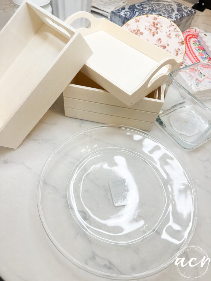 I hopped over to our local Dollar (not Dollar, lol) store and picked up a few items to make over. The napkins came from Home Sense and Home Goods. They always have great selections.